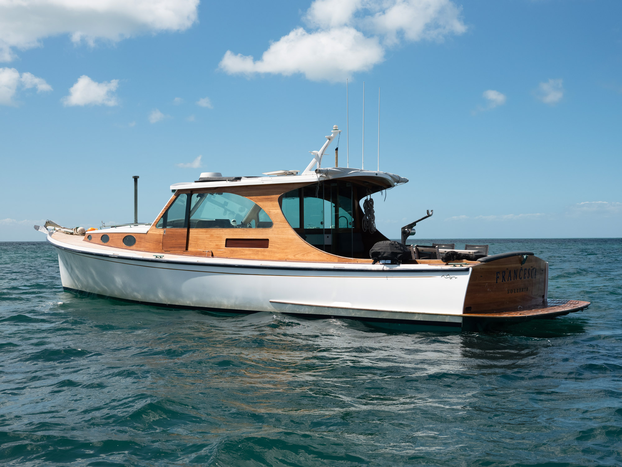 Powered by a Volvo Penta D11 Francesca delivers effortless performance with impressive efficiency and range. Large fuel capacity, water-maker, generous storage and a practical two-cabin layout make her ideal for extended cruising, from Tasmania and beyond.